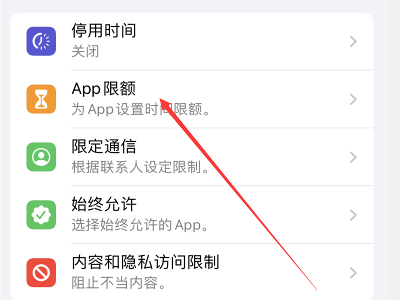 2、点击“app限额”按钮,进入到app限额的设置页面。
