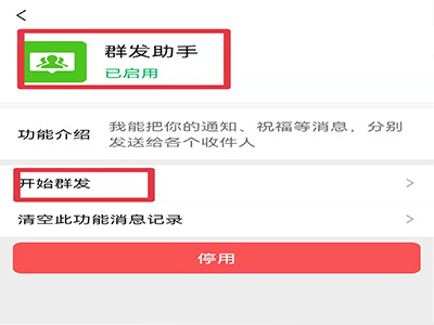 3、点击“群发助手”,选择“开始群发”。
