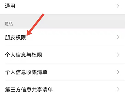2、进入页面后,在列表中选择“朋友权限”选项,点击进入。