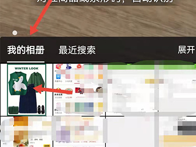 2、在页面中选择我的相册,下拉点击衣服的图片。