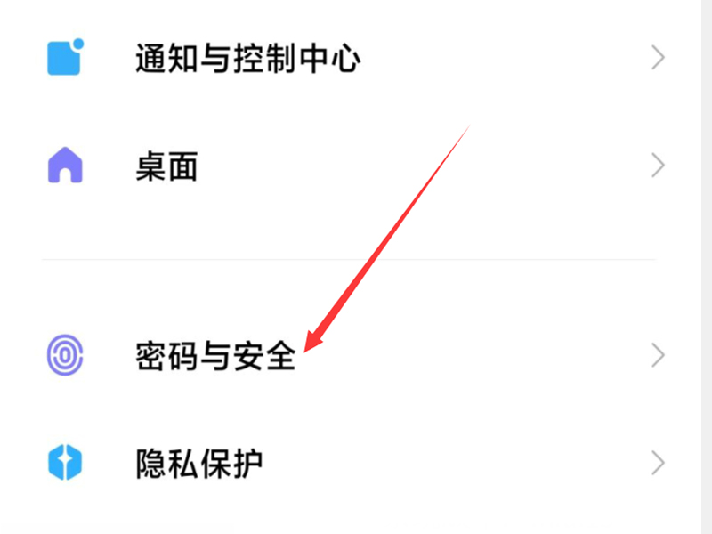 1、打开手机的设置,点击“密码与安全”按钮,进入密码与安全的设置中。