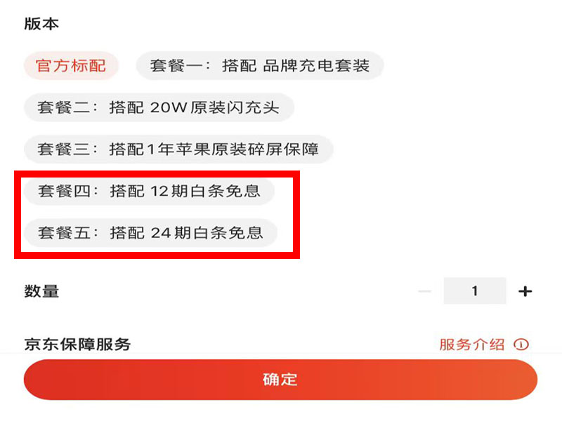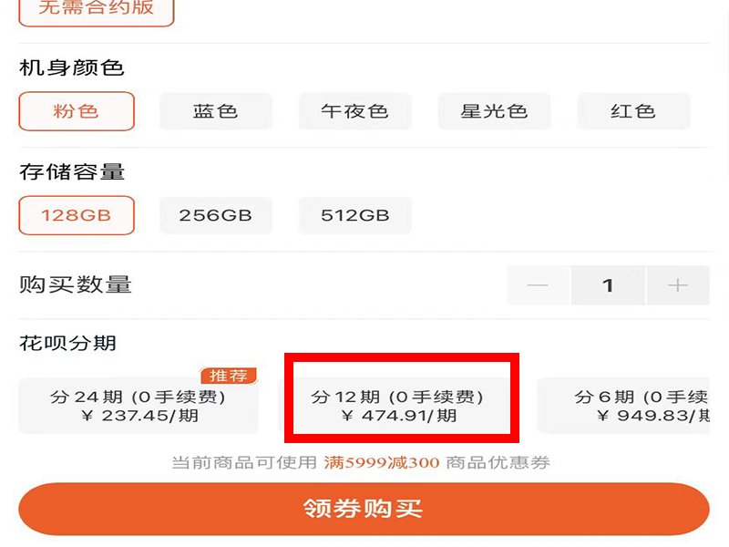 2、进入款式选择界面后,选择想要分期购买的方式即可。
