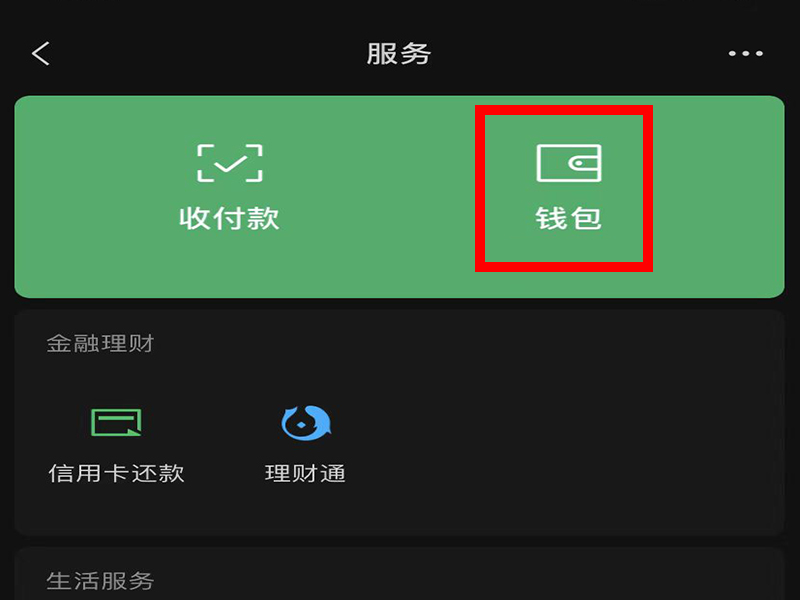 1、打开微信,进入“服务”界面后,点击“钱包”,进入“钱包”界面。