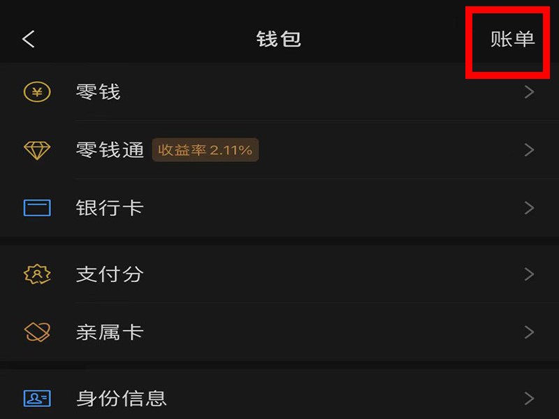 2、进入“钱包”界面后,点击“账单”,进入“账单”界面。