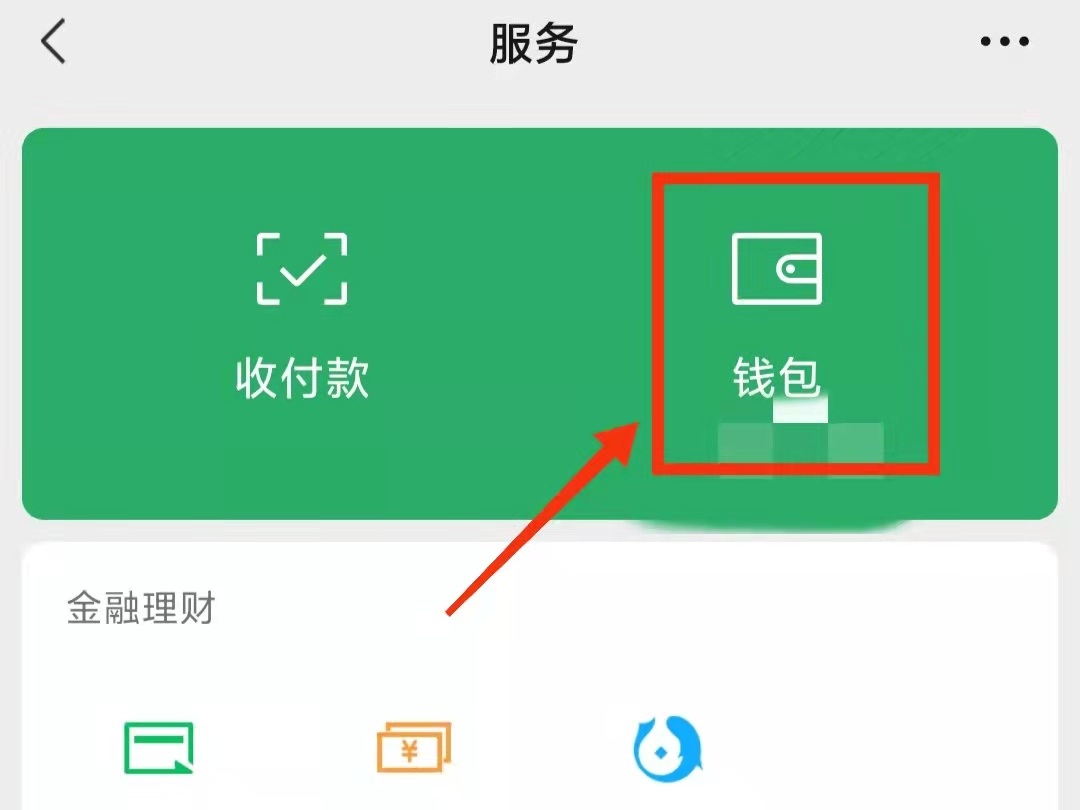 2、点击“服务”,点击“钱包”,进入钱包页面。