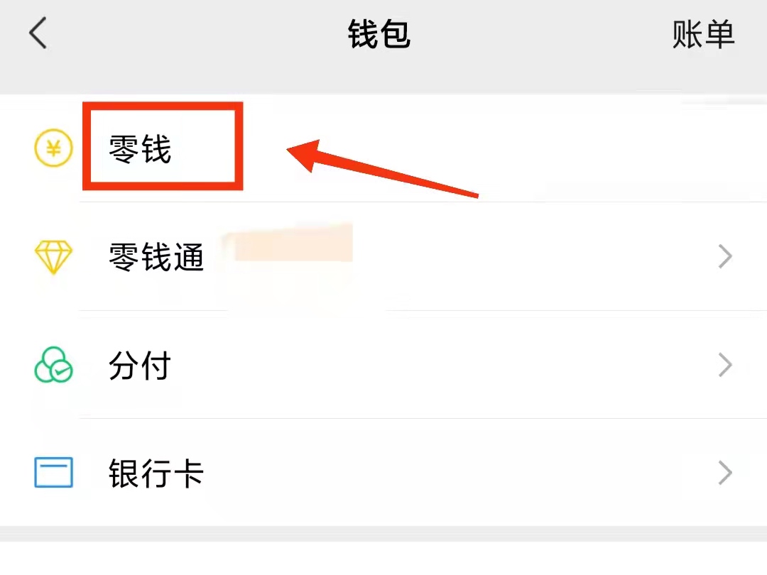 3、点击“零钱”,进入零钱页面。