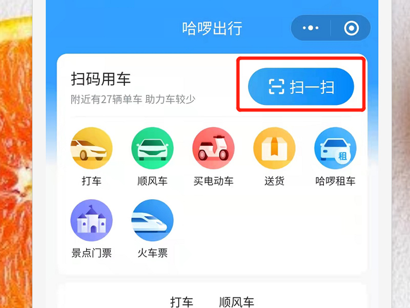 3、进入哈喽出行小程序后,选择扫一扫即可。