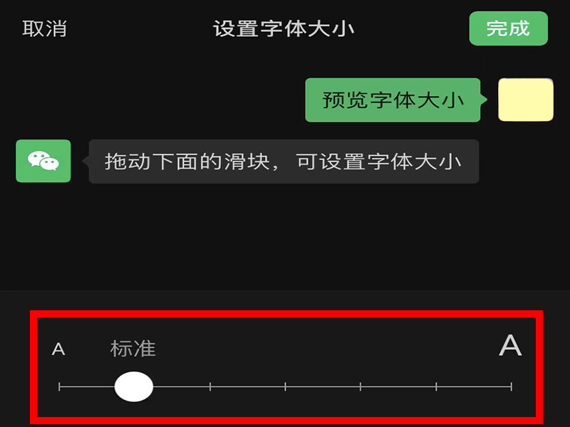 4、进入“设置字体大小”界面后,在下方选择字体大小即可。