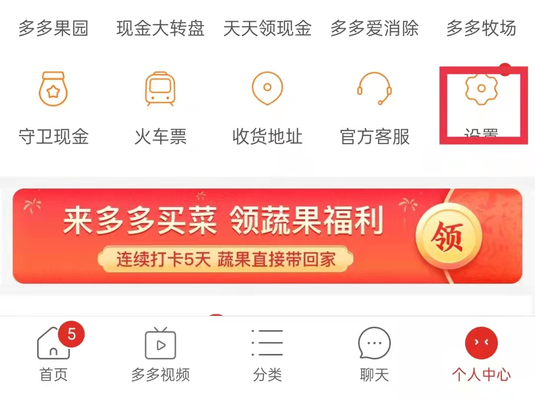 1.在拼多多中点击个人中心,在个人中心中选择设置。