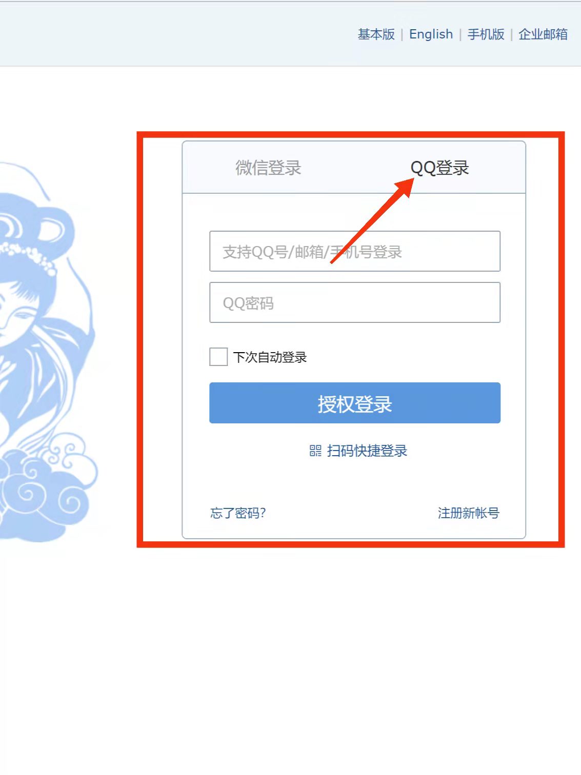 2、进入“登录QQ邮箱”输入相应的账号、密码登录即可。