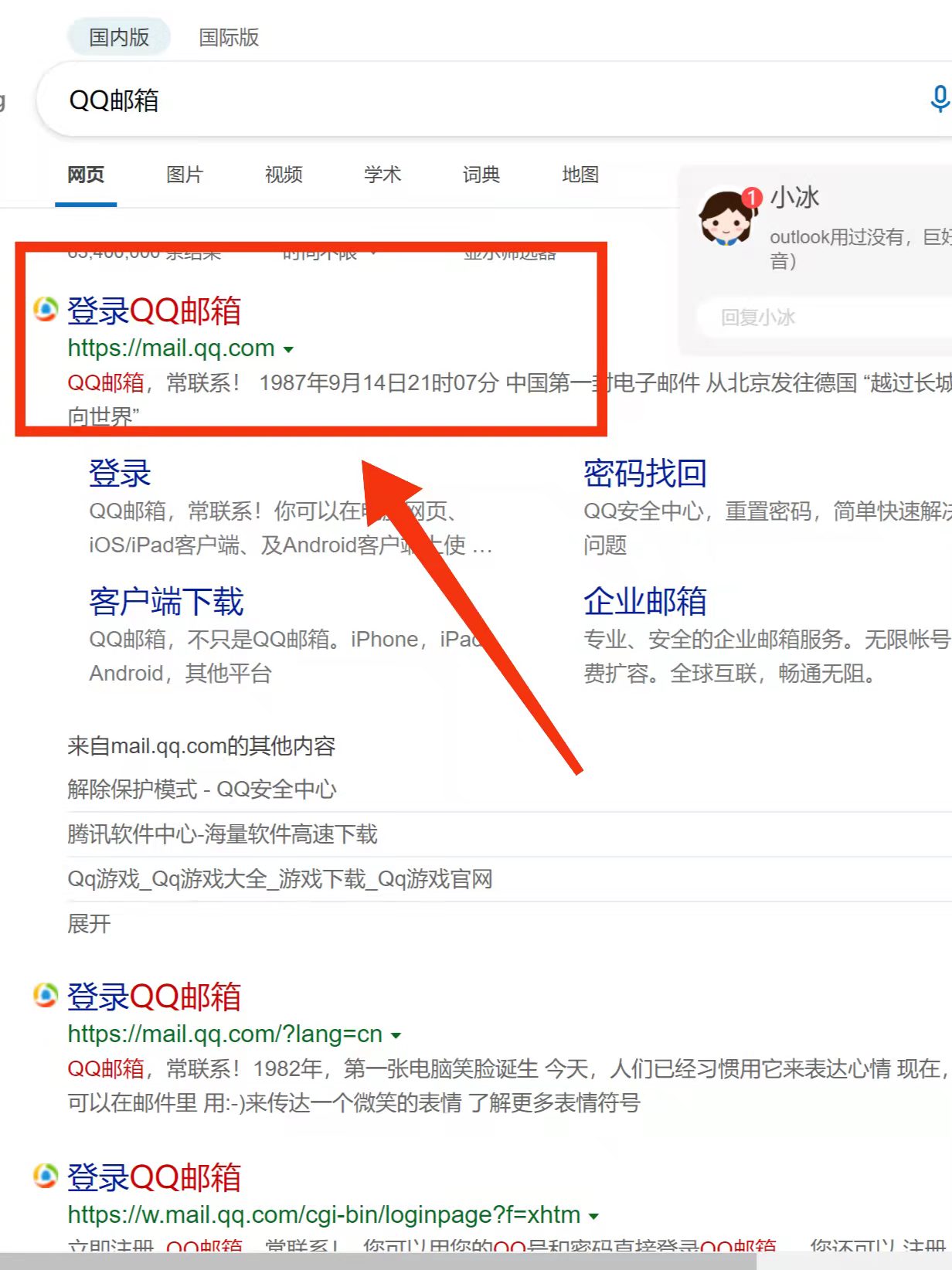 1、在电脑端打开浏览器,在搜索框输入“QQ邮箱”。