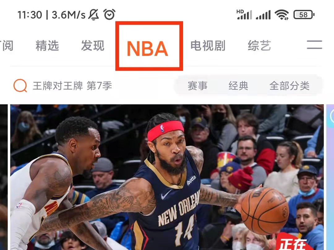 2、点击腾讯视频主页面上方的“NBA”,进入NBA视频页面。