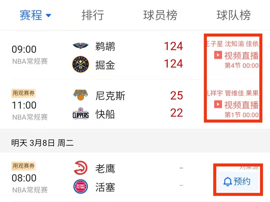 3、有中超赛事直播时,在NBA视频页面点击观看“视频直播”即可。