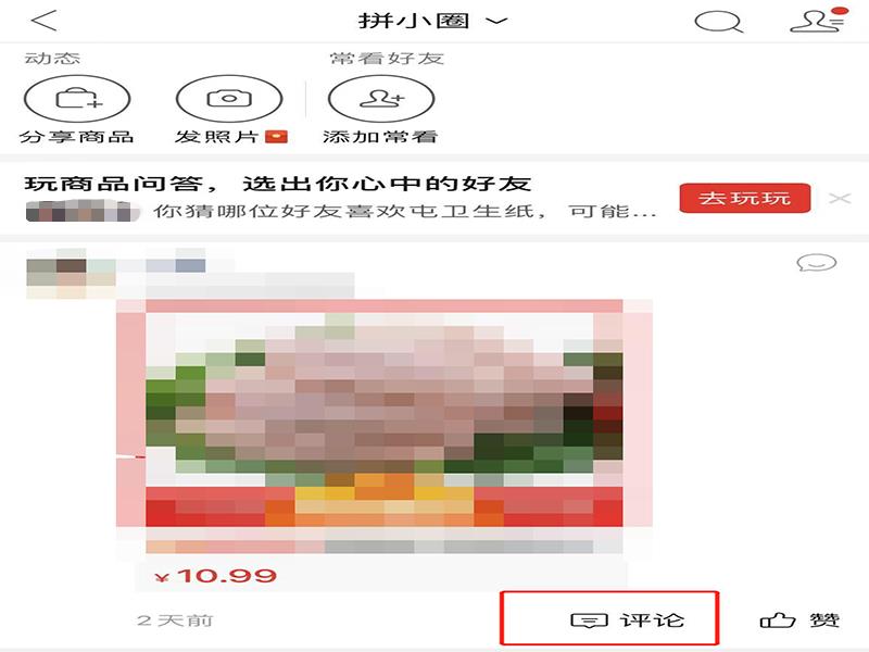 4、在拼小圈页面上,可选择任意一条动态,点击“评论”,进行评论。