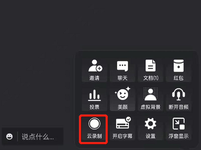 2、点击“更多”,再点击“云录制”,即可开启会议视频录制。