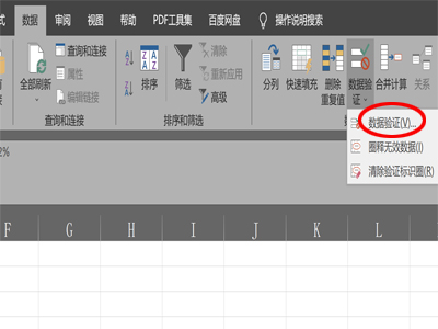 3、如果这样设置后不行,选中数据,单击“数据”->“数据验证”->“数据验证(V)”。