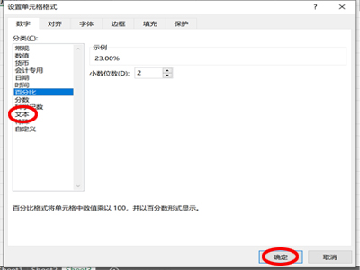 2、将在分类中选择为“文本”,并单击“确定”。