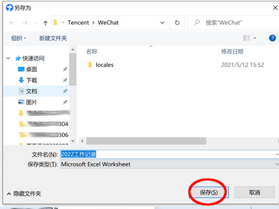 3、选择另存为地址,并单击“保存”,即可以成功将在线文档保存为当地excel。