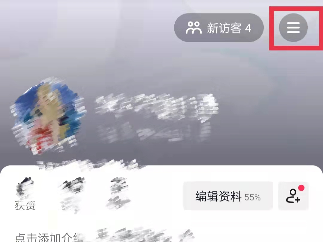 2.在个人主页中,点击右上角三横,打开工具栏。