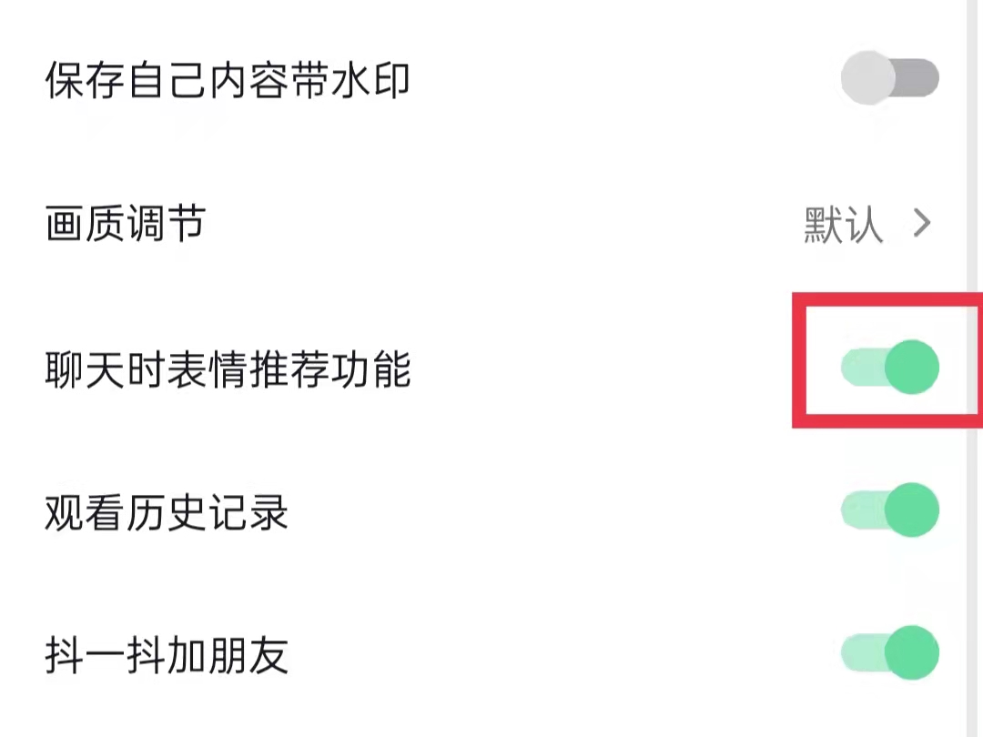 5.在通用设置中,将“聊天时表情推荐功能”的开关打开即可。