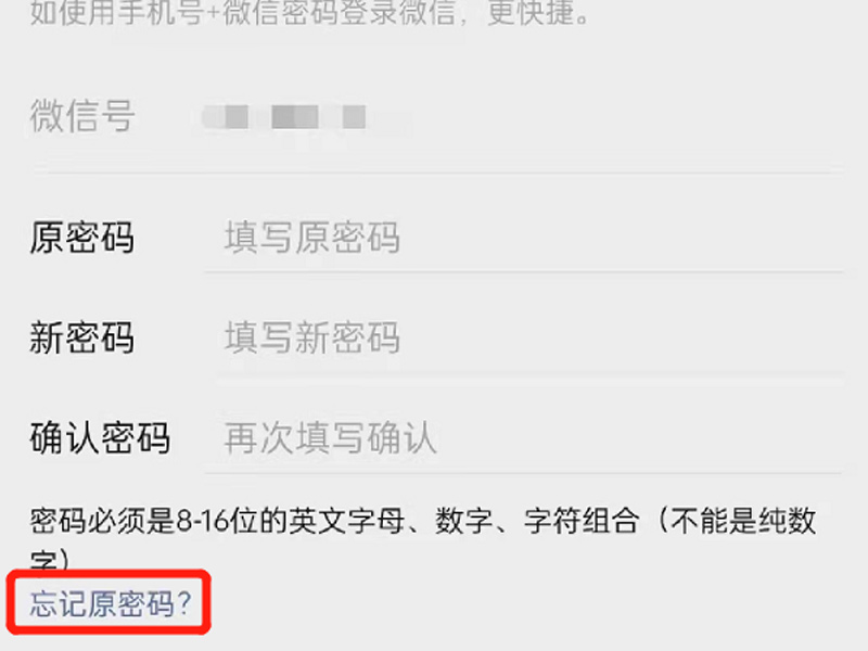 4、点击“忘记原密码”,再点击“发送”,填写短信验证码,即可对微信密码进行重置。