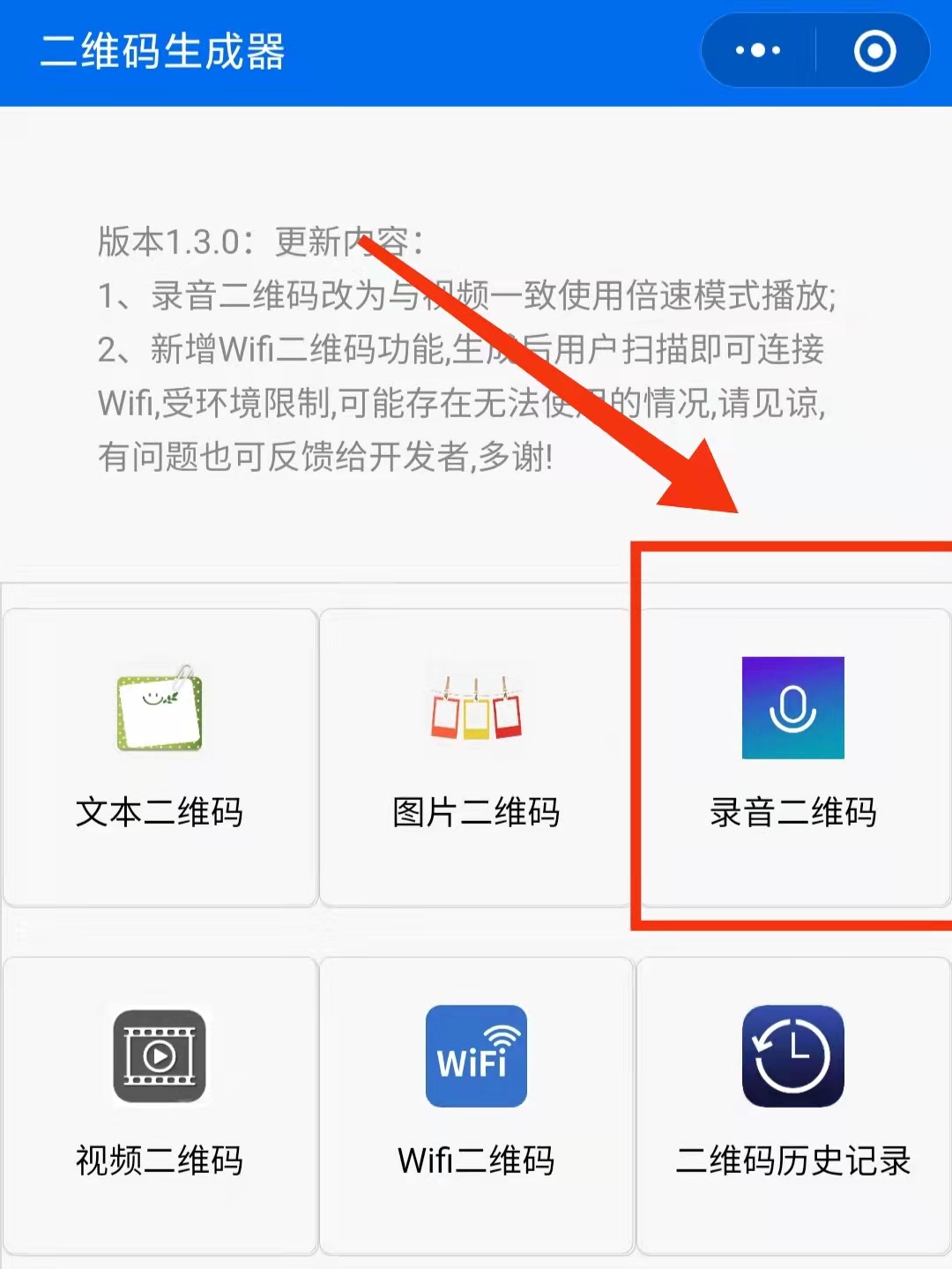 3、在二维码生成器界面选择“录音二维码”开始录制音频。