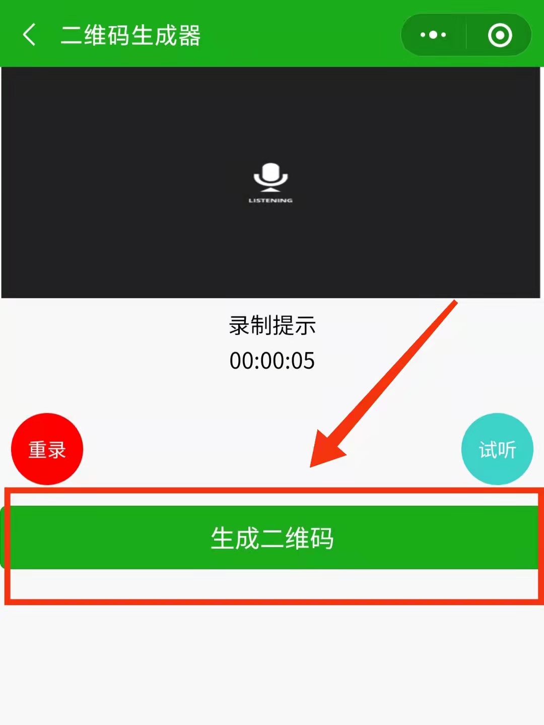 4、录制音频结束后点击“生成二维码”即可保存和分享。