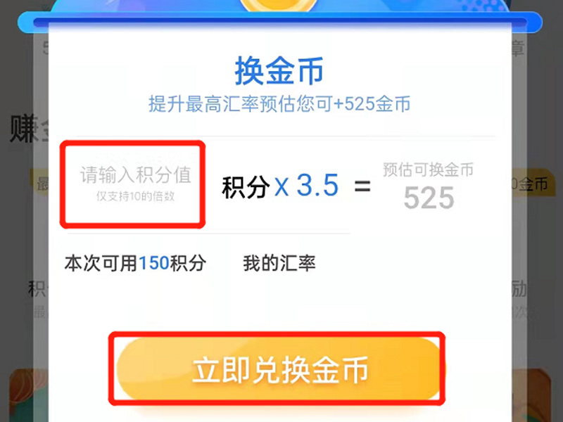 3、点击“积分换金币”,输入要兑换的积分,点击“立即兑换金币”即可将积分兑换成金币。