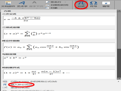 2、单击右侧的“公式”,选择“插入新公式”,进入输入公式状态。