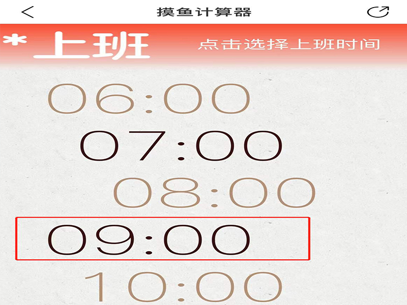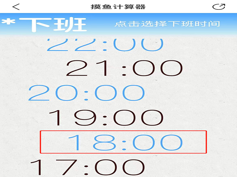 5、在选择下班时间页面上,选择自己的下班时间,最后用户就可以查看到自己的摸鱼数据了。