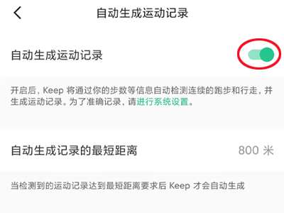5、打开“自动生成运动记录”右侧的按钮,即可记录运动轨迹。