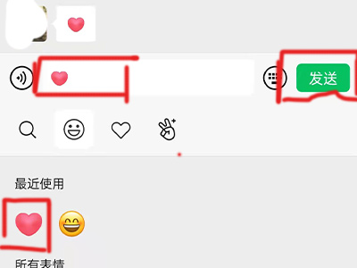 3、在对话框中点击表情,选择并发送爱心表情给好友。