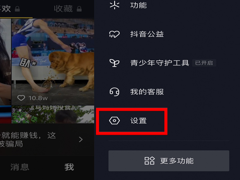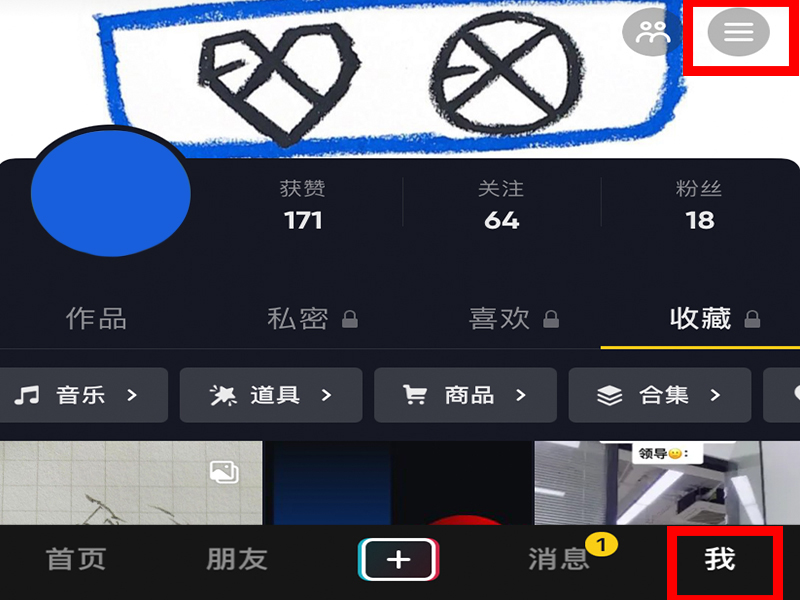 1、打开抖音,点击进入我的界面,再点击右上角的“三条横线”,打开右边的功能栏界面。
