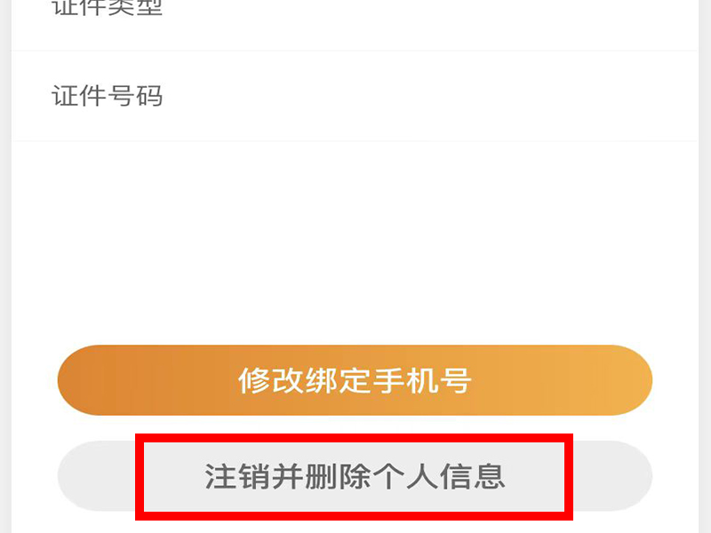4、进入“个人中心”界面后,点击“注册并删除个人信息”,进入“注销账户”界面。