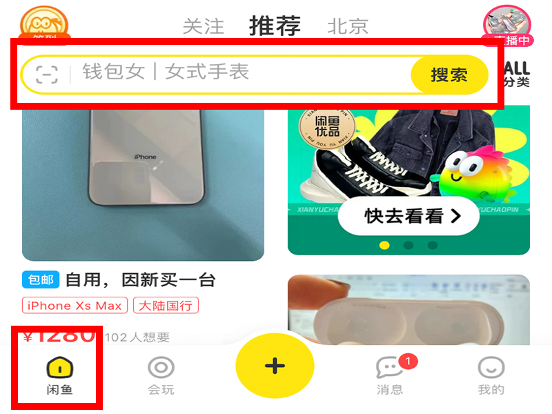 闲鱼是一个能够给人们提供社区化的一个二手闲置交易市场,在闲鱼上搜索用户的具体操作方式如下: