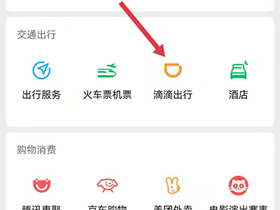 3、进入页面后,在交通出行一栏中点击“滴滴出行”,即可进入平台。