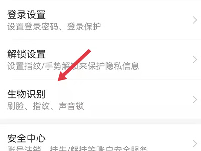 3、进入页面后,在列表中找到“生物识别”,点击进入。