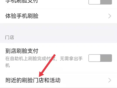 5、进入页面后,点击“附近的刷脸门店和活动”,即可查看附近刷脸门店。