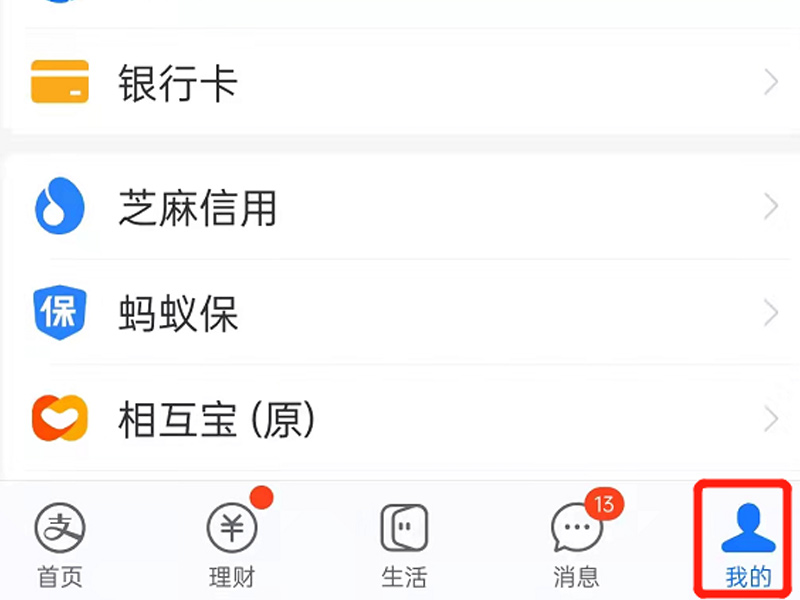 4、支付宝也是手机常用的app,添加银行卡时,要打开手机支付宝app,点击“我的”。
