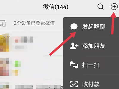 1、打开微信app,点击右上角的信息图标,并选择“发起群聊”,进入页面。