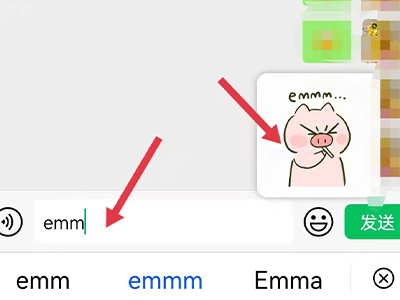 2、在打字框中输入“emm”,点击弹出来的表情即可完成发送。