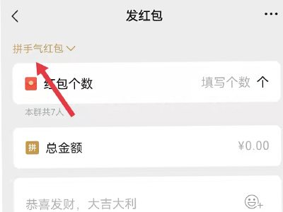 2、在页面中,点击左上角的“拼手气红包”,进入页面。
