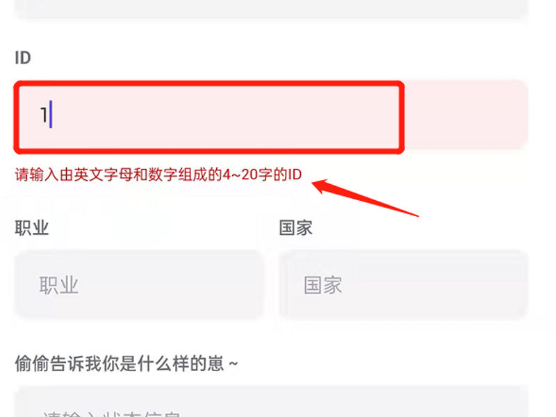 3、找到“ID”,即可进行ID填写,ID由英文字母和数字组成,4-20字。