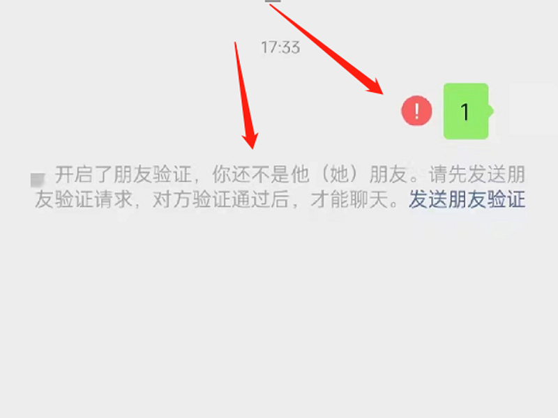 2、向好友发送消息,如果出现红色感叹号,说明已被对方删除。