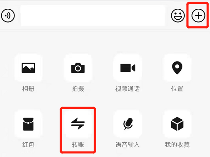 3、还可以向好友转账判断对方是不是单向好友,在好友聊天页面点击“+”号,点击“转账”,进入转账页面。