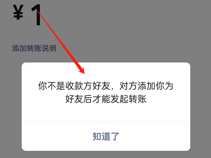 4、设置转账金额,进行转账,如果对方是单向好友,会出现不能够转账的提示。