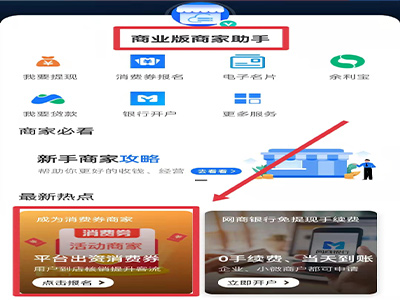 以支付宝商家为例,支付宝商家消费券可以通过“商业版商家助手”小程序进行报名。具体操作方法如下: