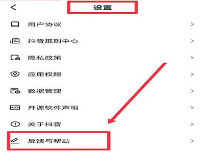 3、向上滑动设置页面,点击“反馈与帮助”。