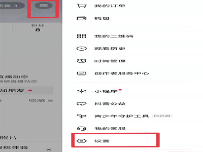 2、点击右上角的“三横”图标,点击下方的“设置”按钮。