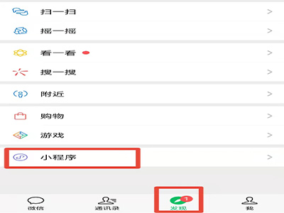 1、打开微信app,切换到“发现”页面,点击下方的“小程序”。
